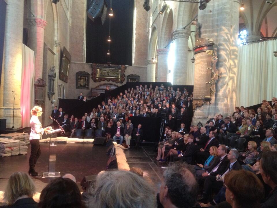 Prinses Beatrix woonde donderdag een symposium over angst bij in de Pieterskerk in Leiden.